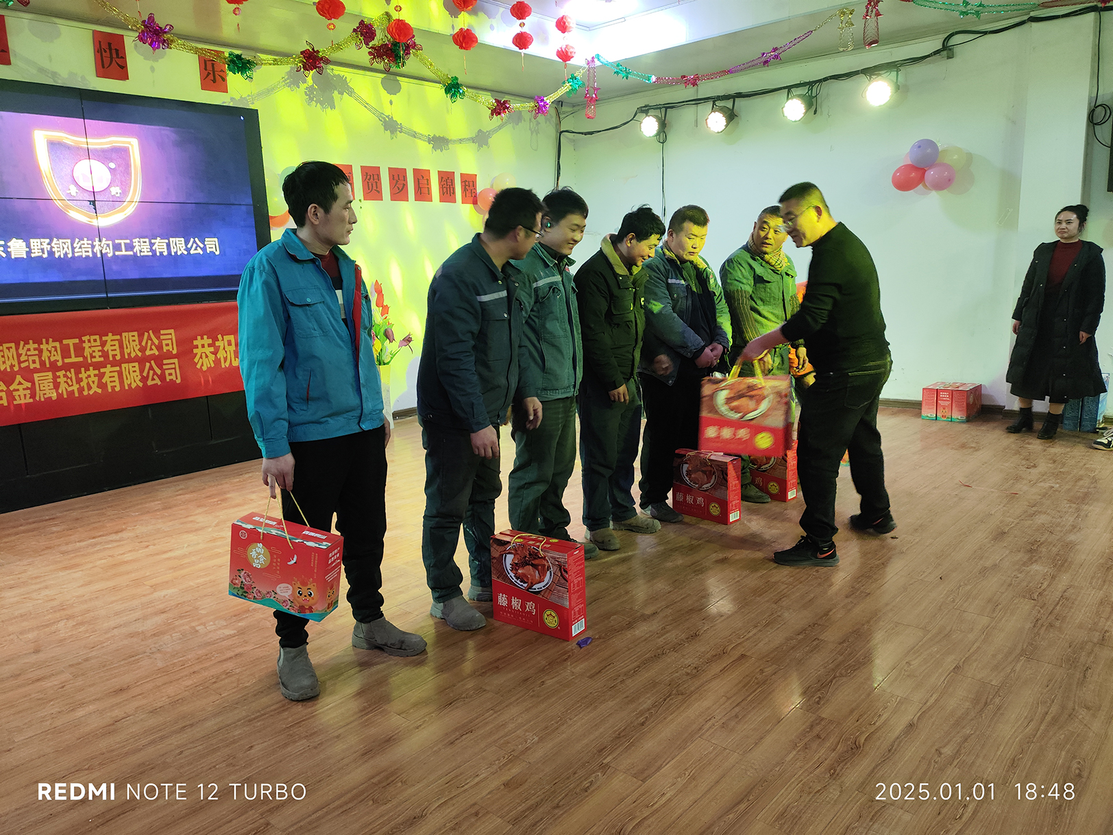 在辭舊迎新之際,魯野鋼結(jié)構(gòu)工程有限公司于2025年1月1日成功舉辦了一場(chǎng)精彩紛呈的元旦聯(lián)歡會(huì),全體員工歡聚一堂,共度佳節(jié),為過去一年的辛勤付出畫上圓滿句號(hào),同時(shí)奏響新年奮進(jìn)的激昂序曲。